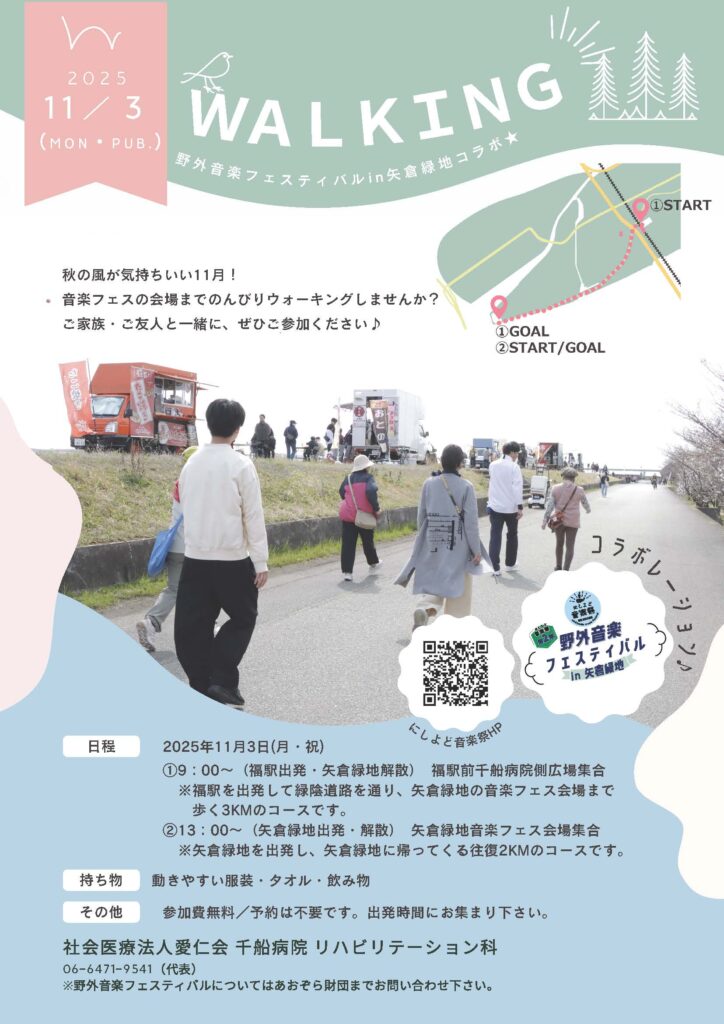 当院・千船病院からは、リハビリテーション職員と一緒に歩く「健康ウォーキング」 を実施します!