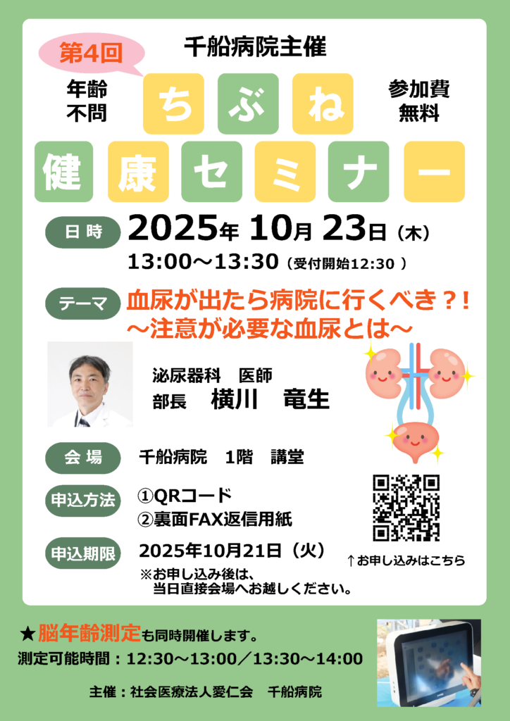 2025.10.0210月23日(木)に千船病院主催『ちぶね健康セミナー』を開催します