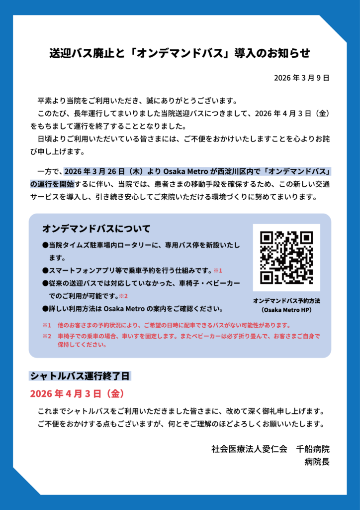 千船病院をご利用の皆さまへ