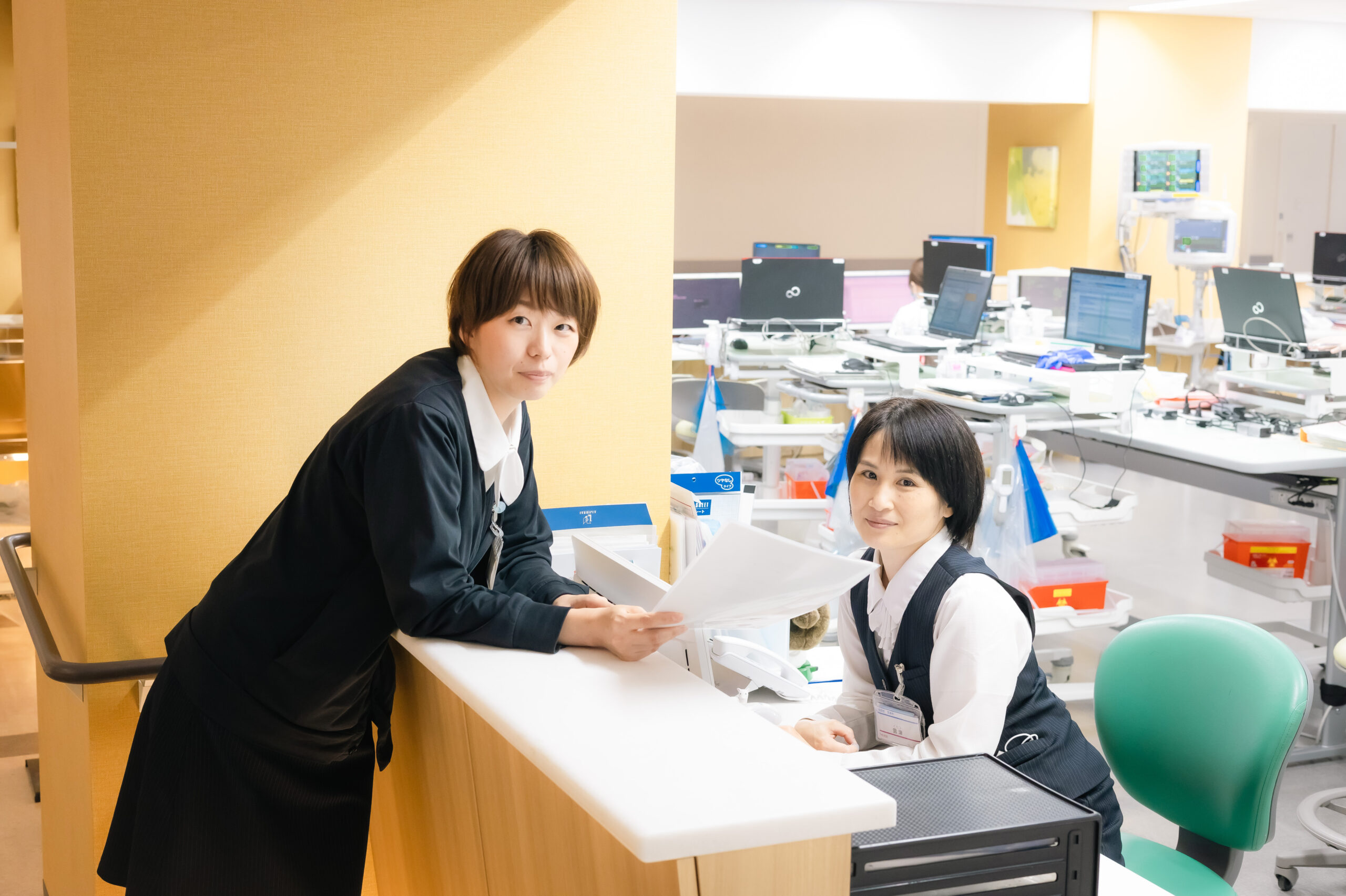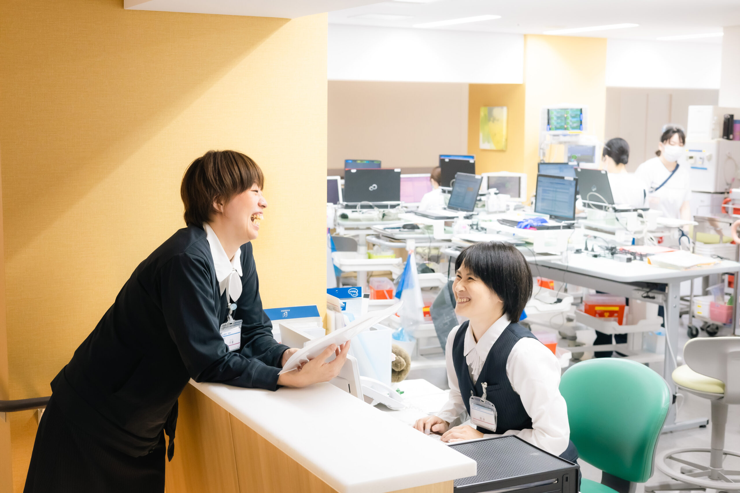2人は声を合わせて笑った。持ち前の明るさと優しさ、これまでの経験を踏まえながら医事科の後輩を指導し、引っ張っている。